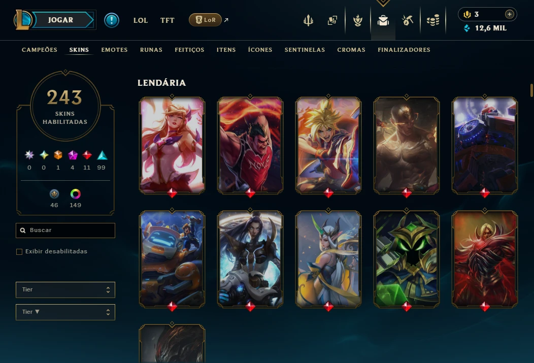 Vendo conta league of legends 200+ skins, todos os campeões, level 300+, conta já foi mestre em season anteriores, atualmente esmeralda 1.