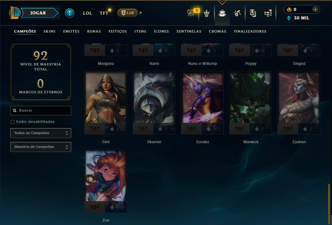 Mestre com 50 Champs e 7 Skins ( 22 PDL ) - League of Legends LOL