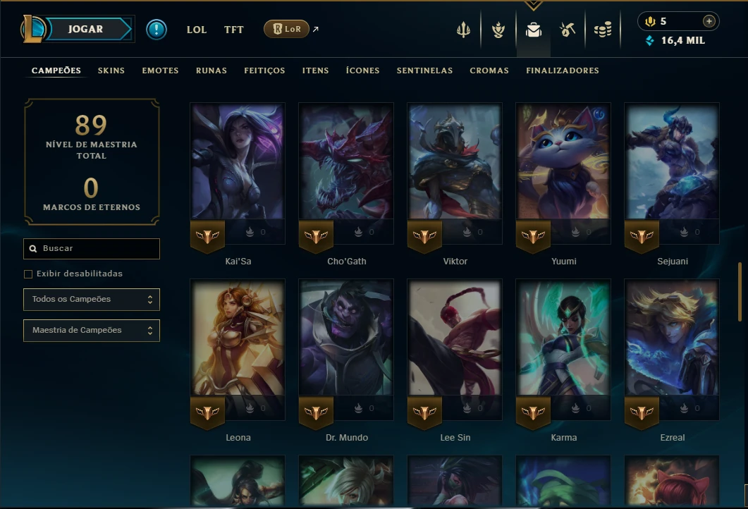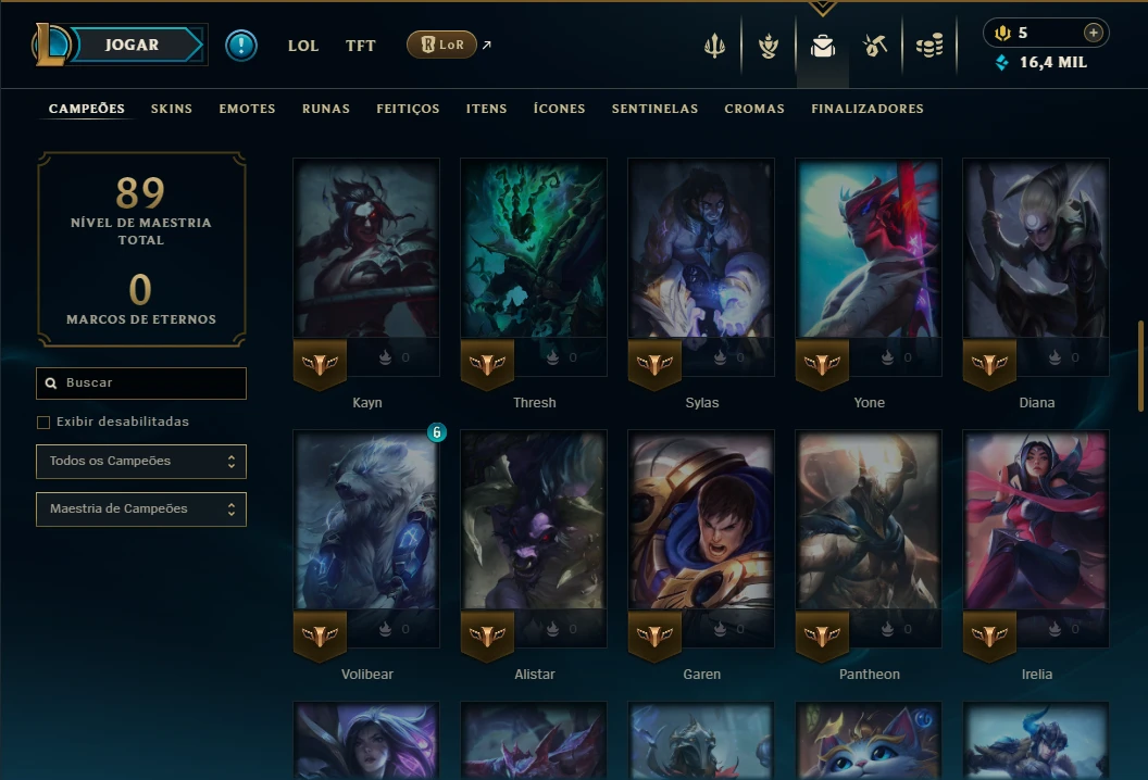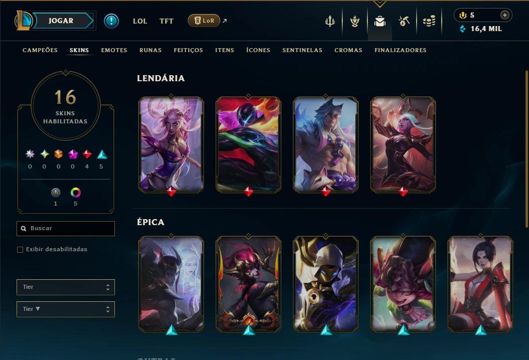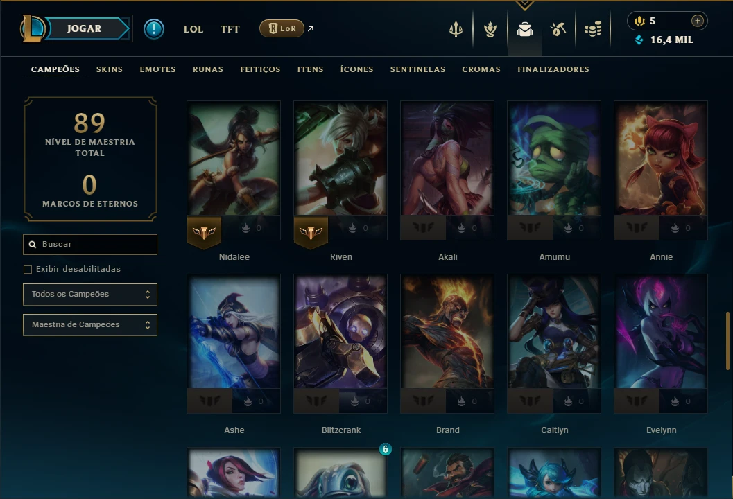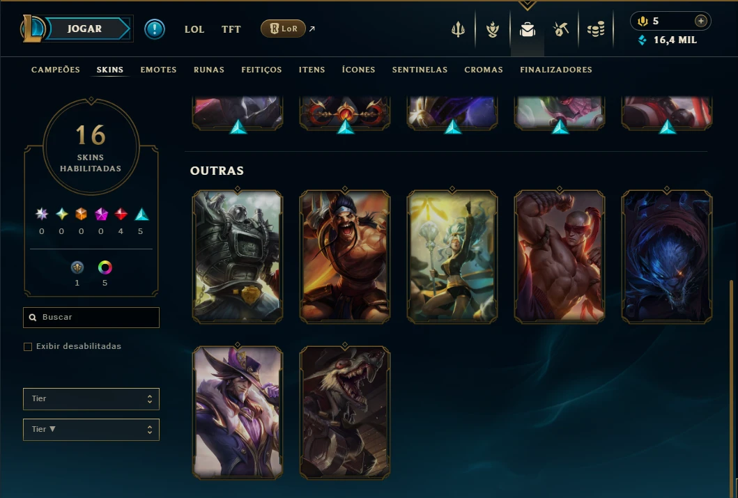 Ouro 1 com 75 Champs e 16 Skins