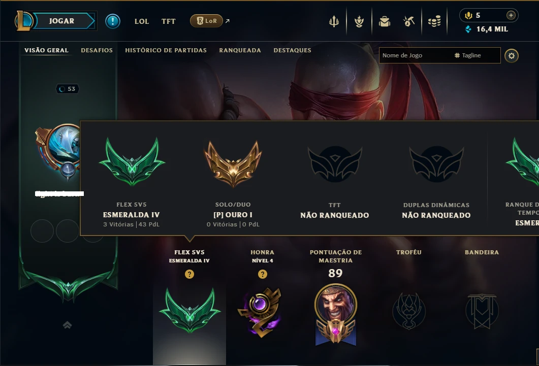 Ouro 1 com 75 Champs e 16 Skins - League of Legends LOL