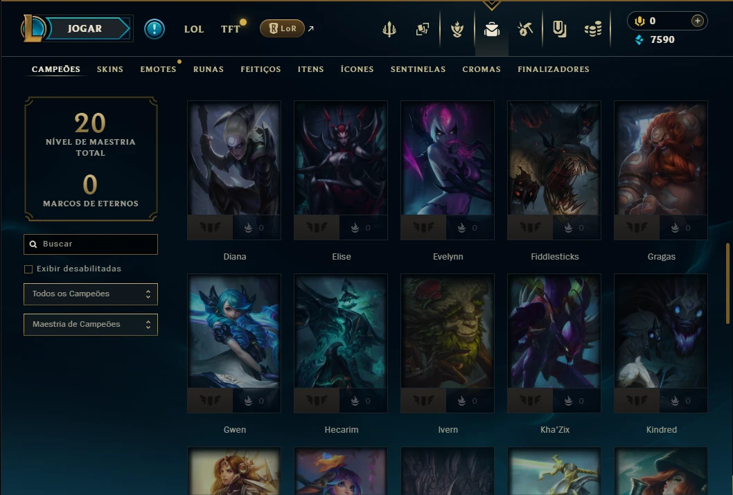 Ouro 2 com 55 Champs e 5 Skins - League of Legends LOL