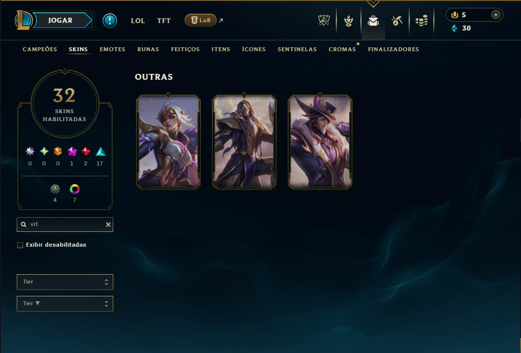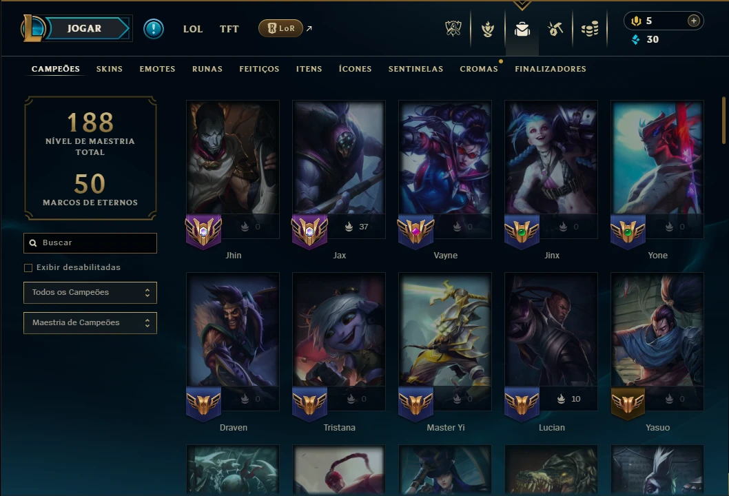 Ouro 2 com 90 Champs e 32 Skins ( ADC / MID / JG ) - League of Legends LOL