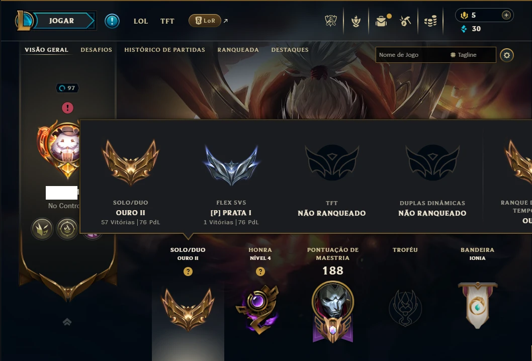 Ouro 2 com 90 Champs e 32 Skins ( ADC / MID / JG )
