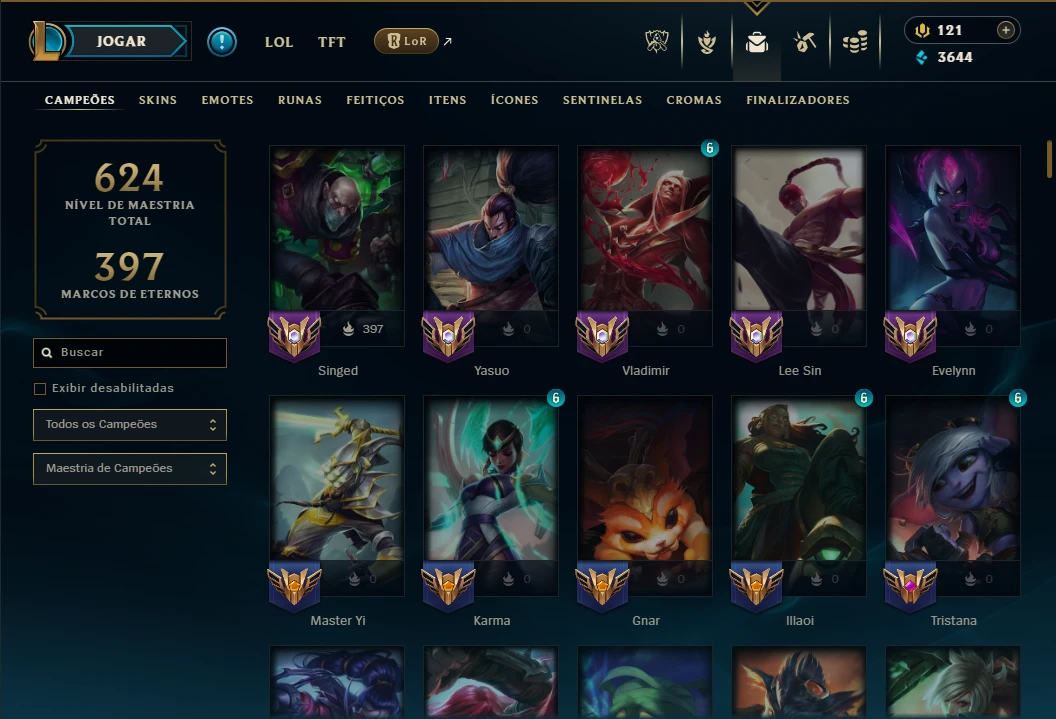 Ouro 4 com 150 Champs e 154 Skins ( TOP / MID / JG ) - League of Legends LOL