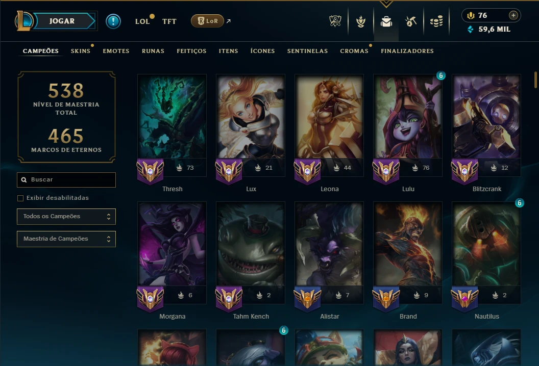 Mais de 5.000 vendas no site – Experiência e Confiança!Ouro 4 com TODOS os Champs e 218 Skins ( MAIN SUP )