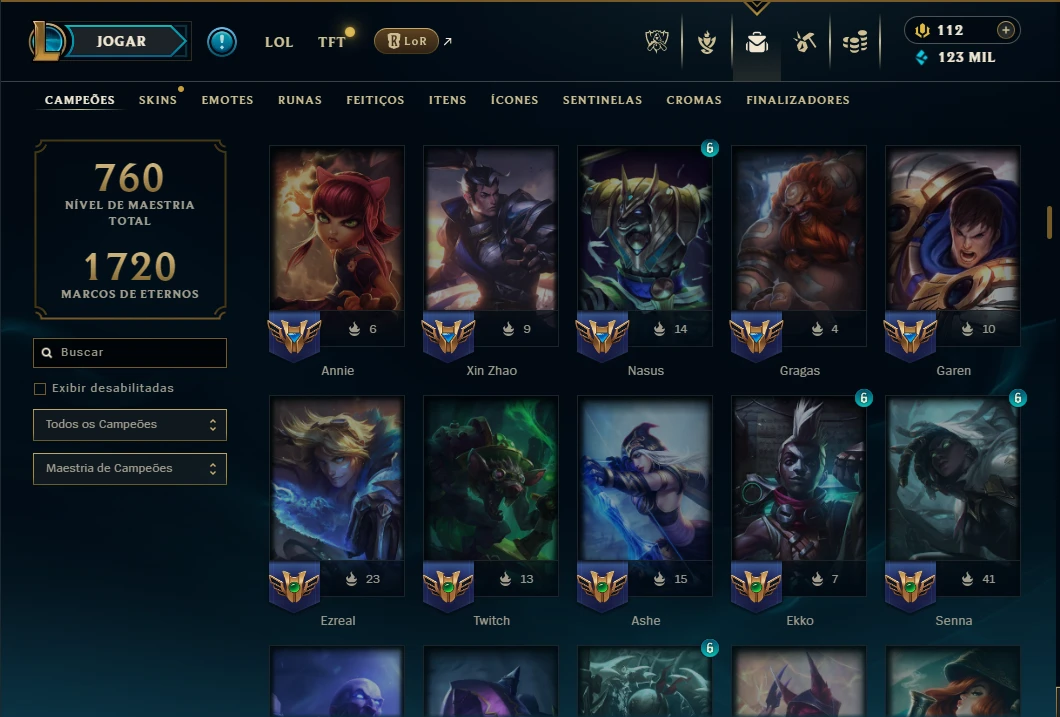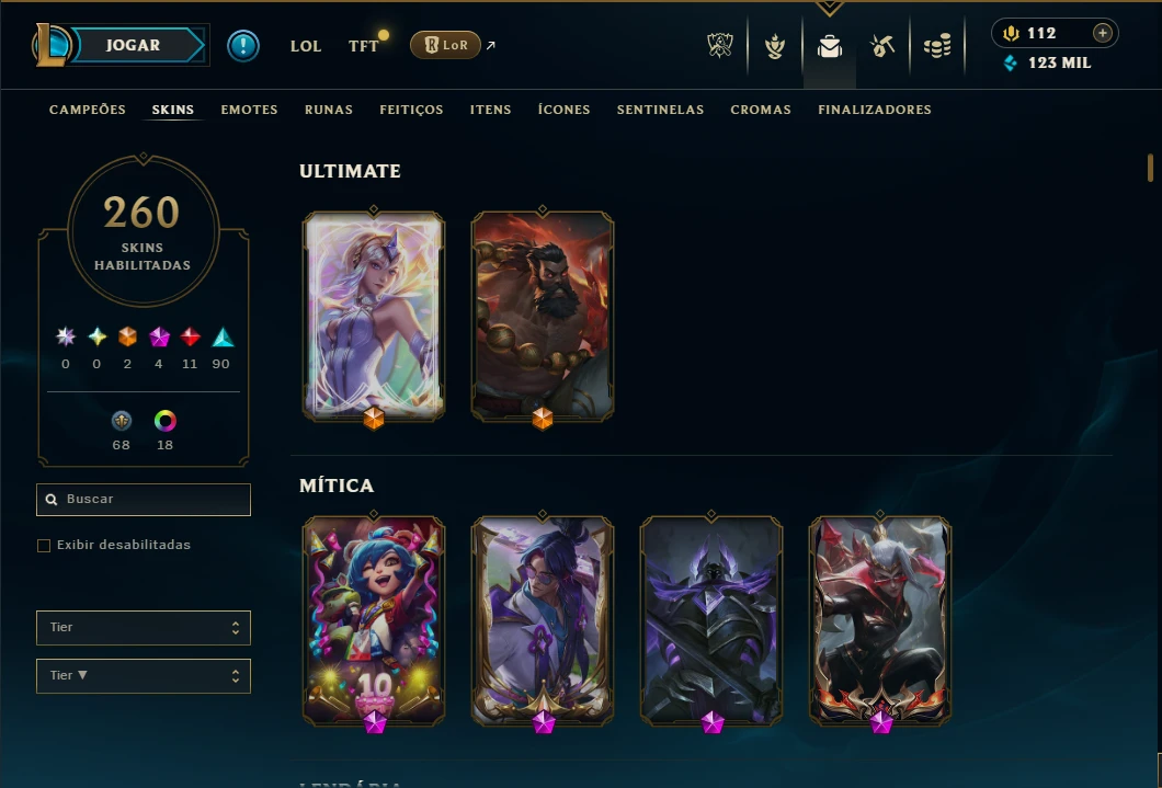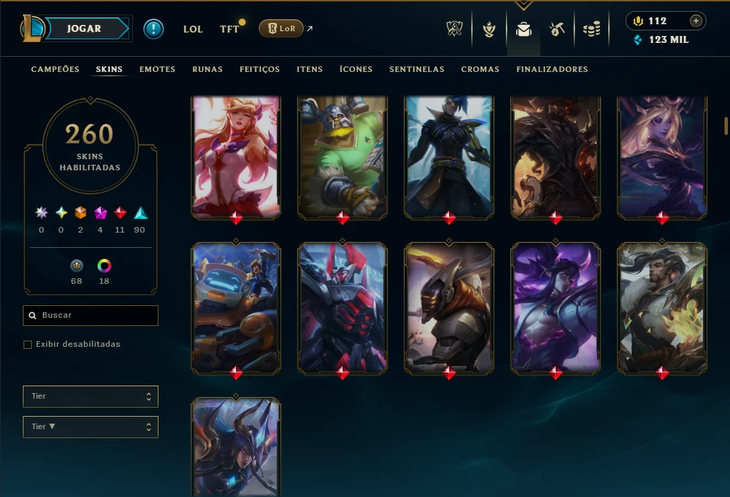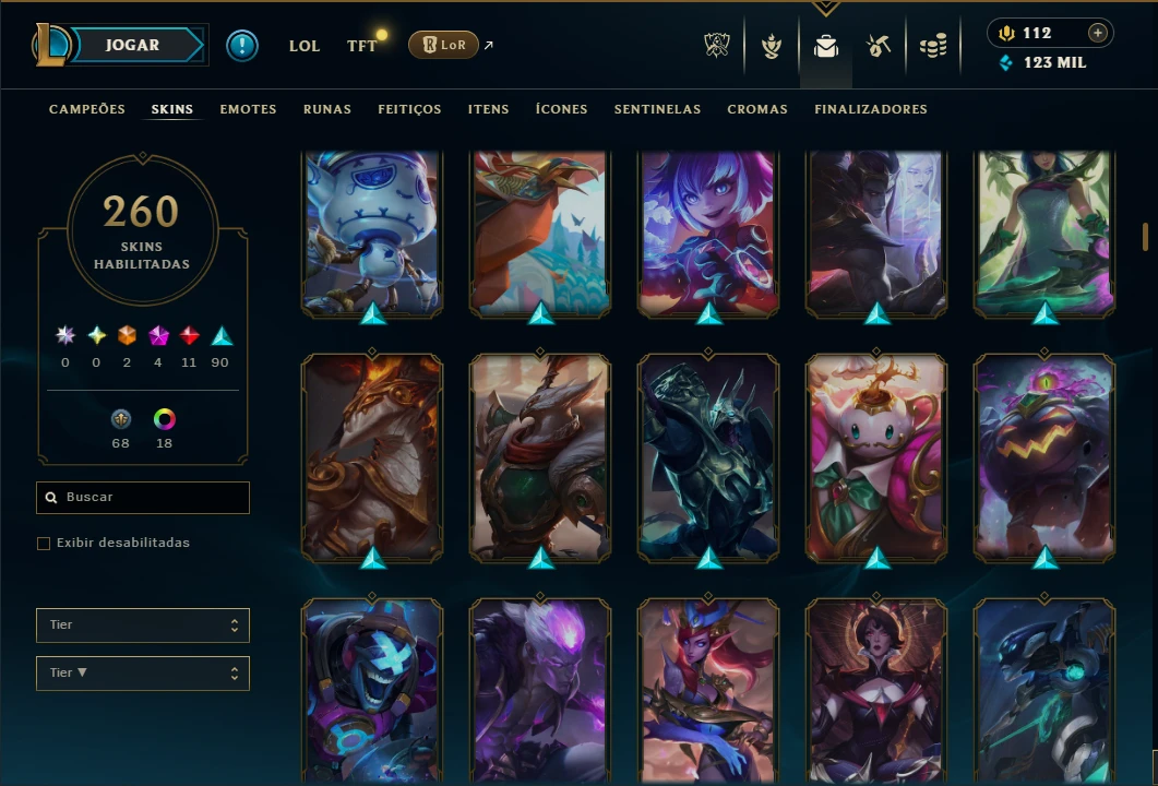 Ouro 4 com TODOS os Champs e 260 Skins +1 Prestigio + 1 Rara - League of Legends LOL