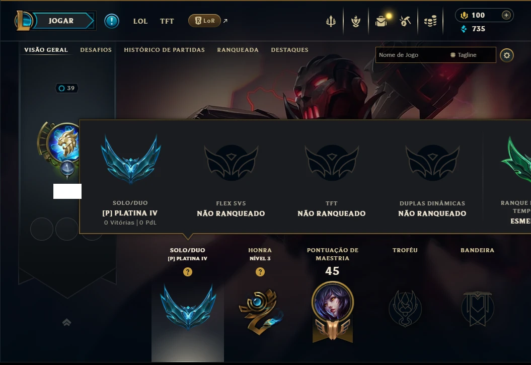 Platina 4 com 35 Champs e 7 Skins - League of Legends LOL