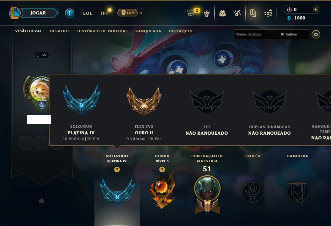 Platina 4 com 60 Champs e 3 Skins - League of Legends LOL