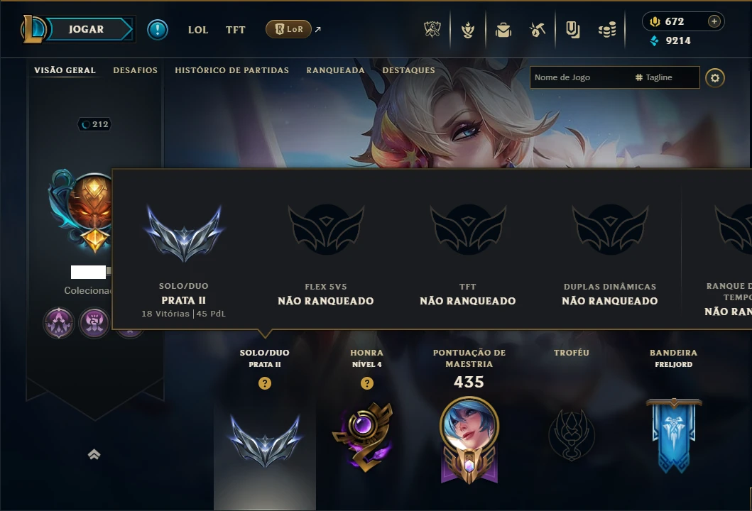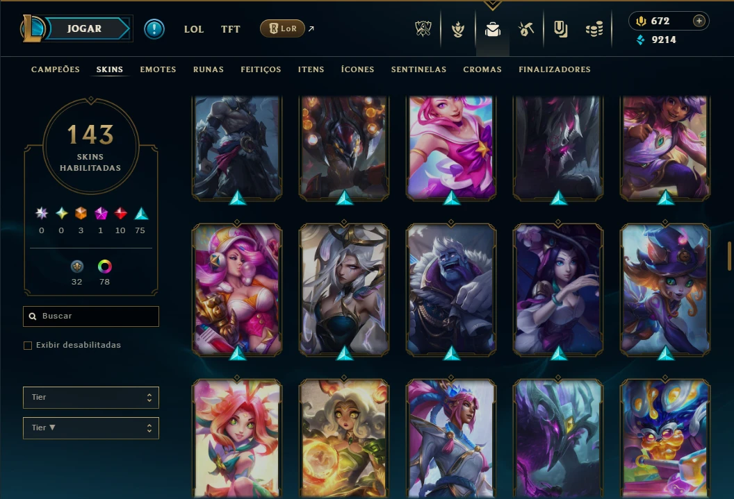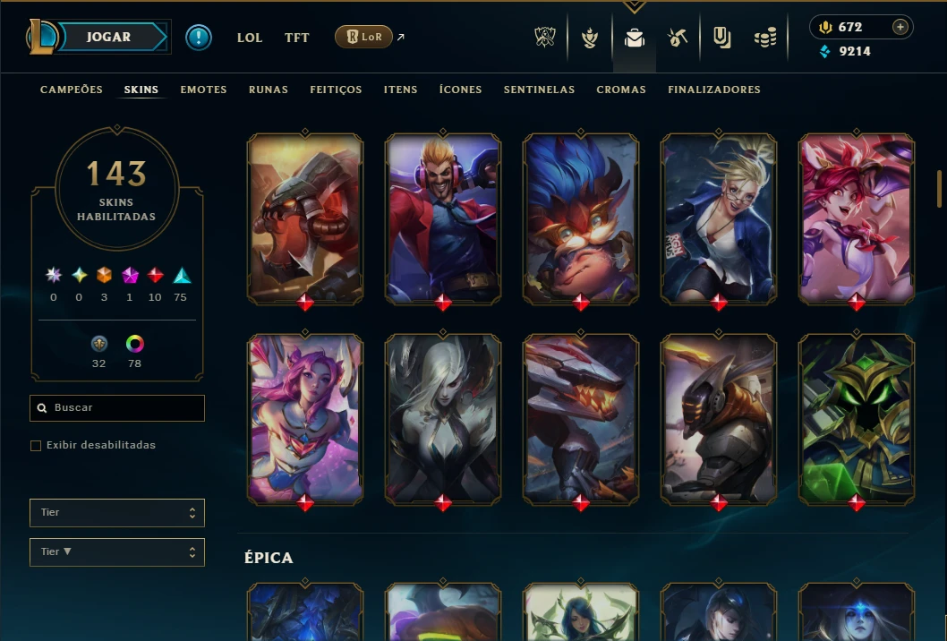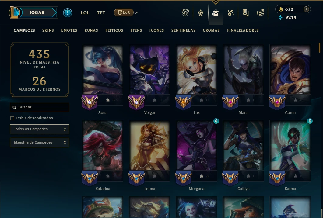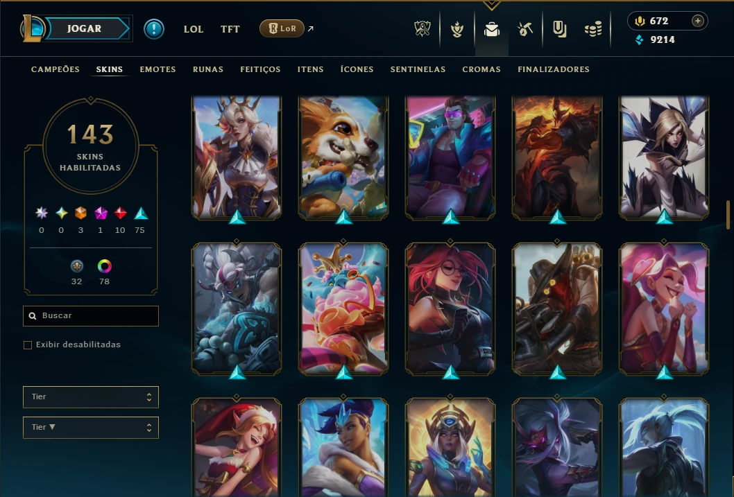 ( ADC / MID / SUP ) - Conta Prata 2 com TODOS os Champs, 13 Maestrias acima de 7, 143 Skins, 3 Ultimates, 5 Vitoriosas, 672 RP, 78 Cromas, 199 Ícones, 89 Emotes, 1 Fragmento de skin, 30 Essencias Miticas e Honra 4.