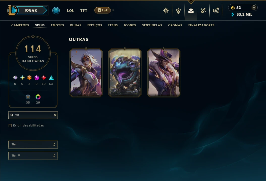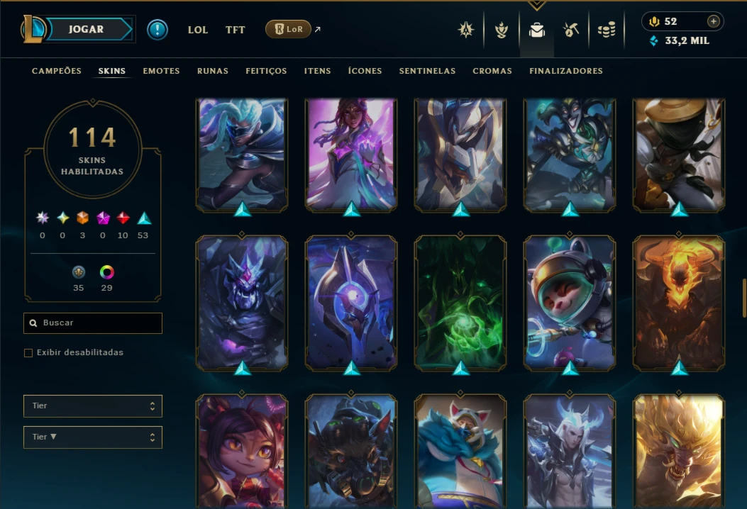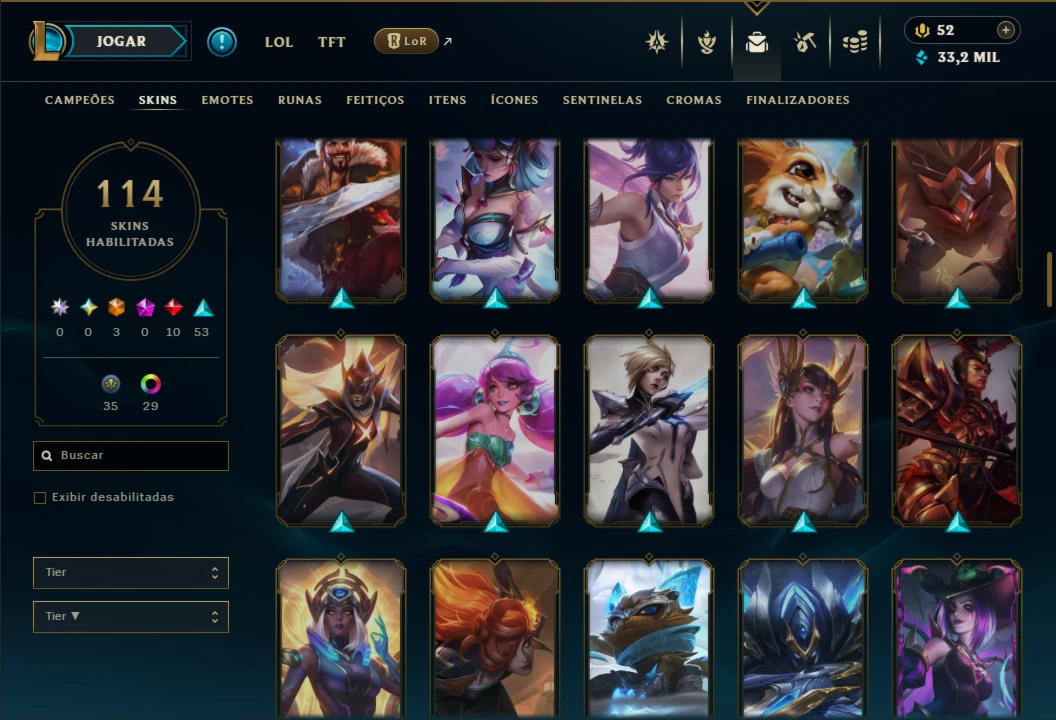 Prata 3 com 120 Champs e 114 Skins ( ADC / SUP / TOP )