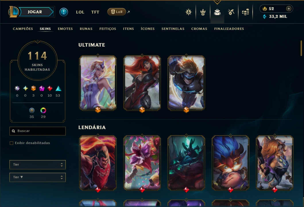 ( ADC / SUP / TOP ) - Conta prata 3 com 250 Jogos, 120 Champs, Maestria 16 de Lux, 114 Skins, 3 Ultimates, 3 Vitoriosas, 33k de EA, 29 Cromas, 190 Ícones, 136 Emotes, 1 Reembolso e Honra 4.