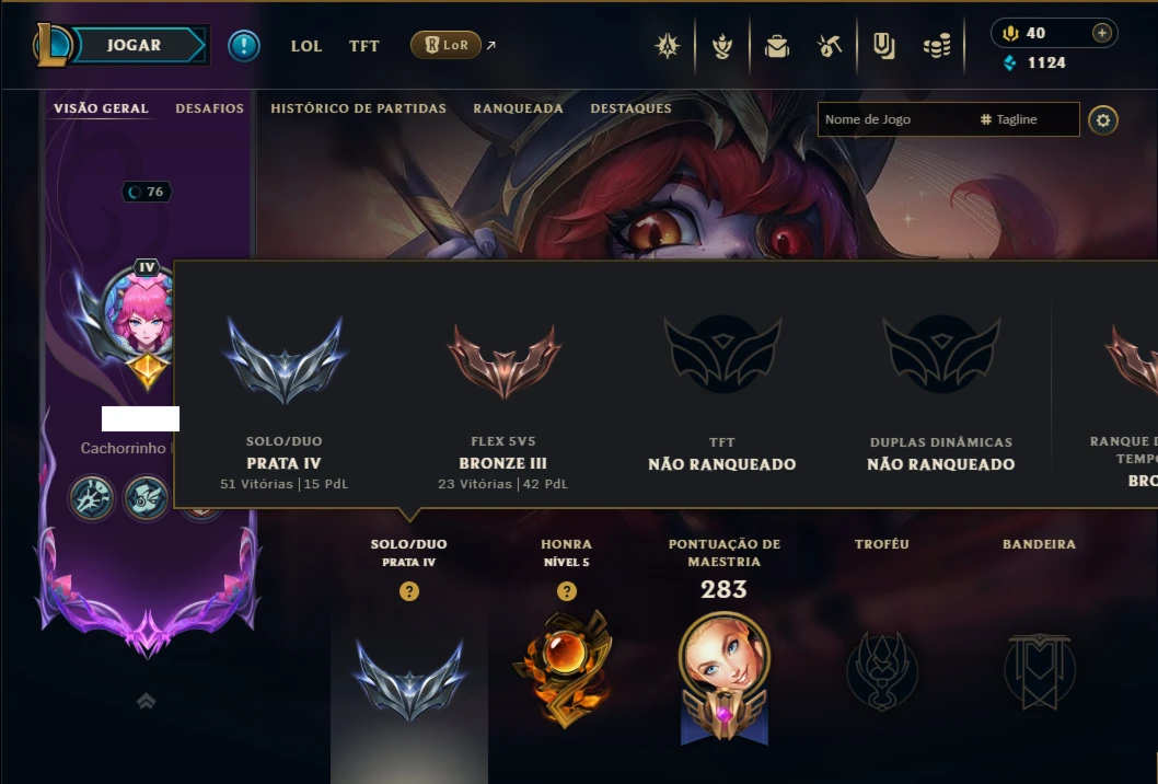 Prata 4 com 120 Champs e 43 Skins +3 Prestigios - League of Legends LOL
