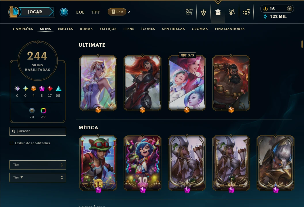 Mais de 5.000 vendas no site – Experiência e Confiança!Prata 4 com TODOS os Champs e 244 Skins +3 Prestigios