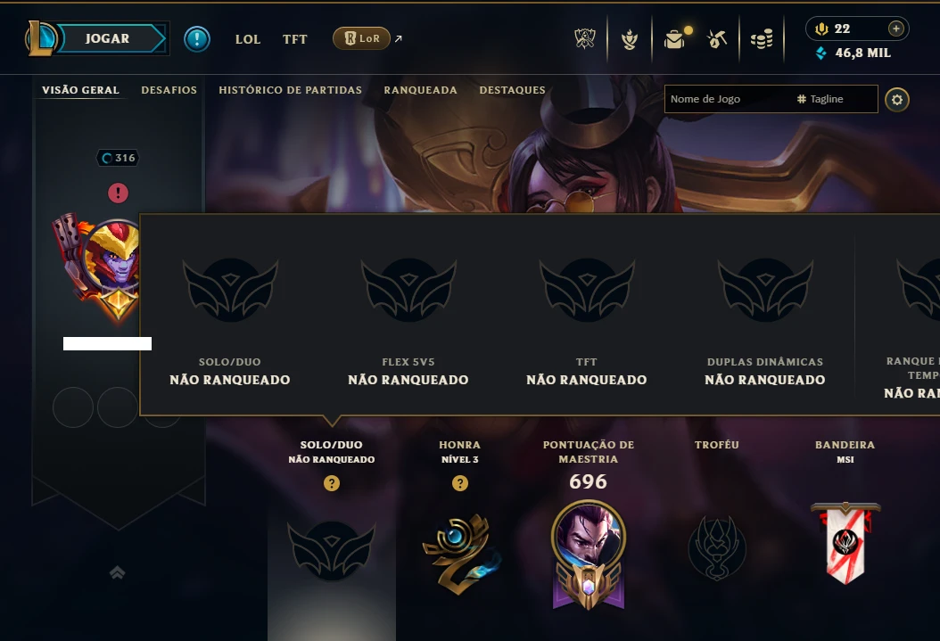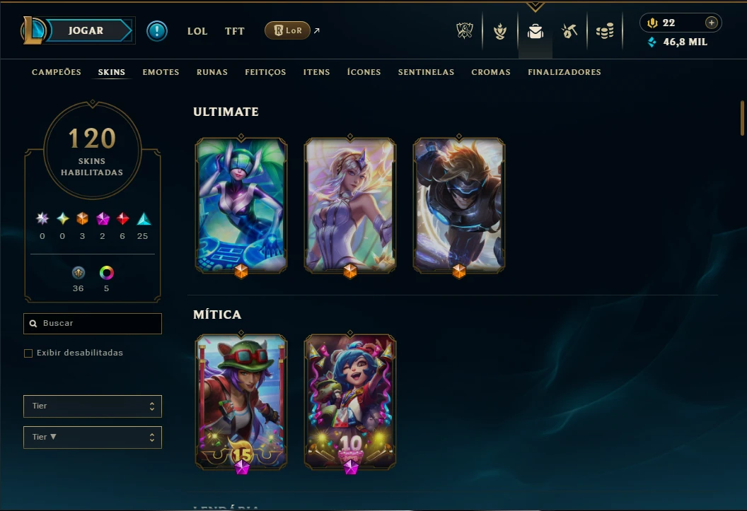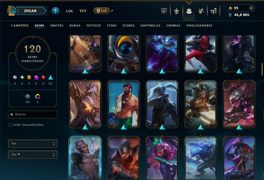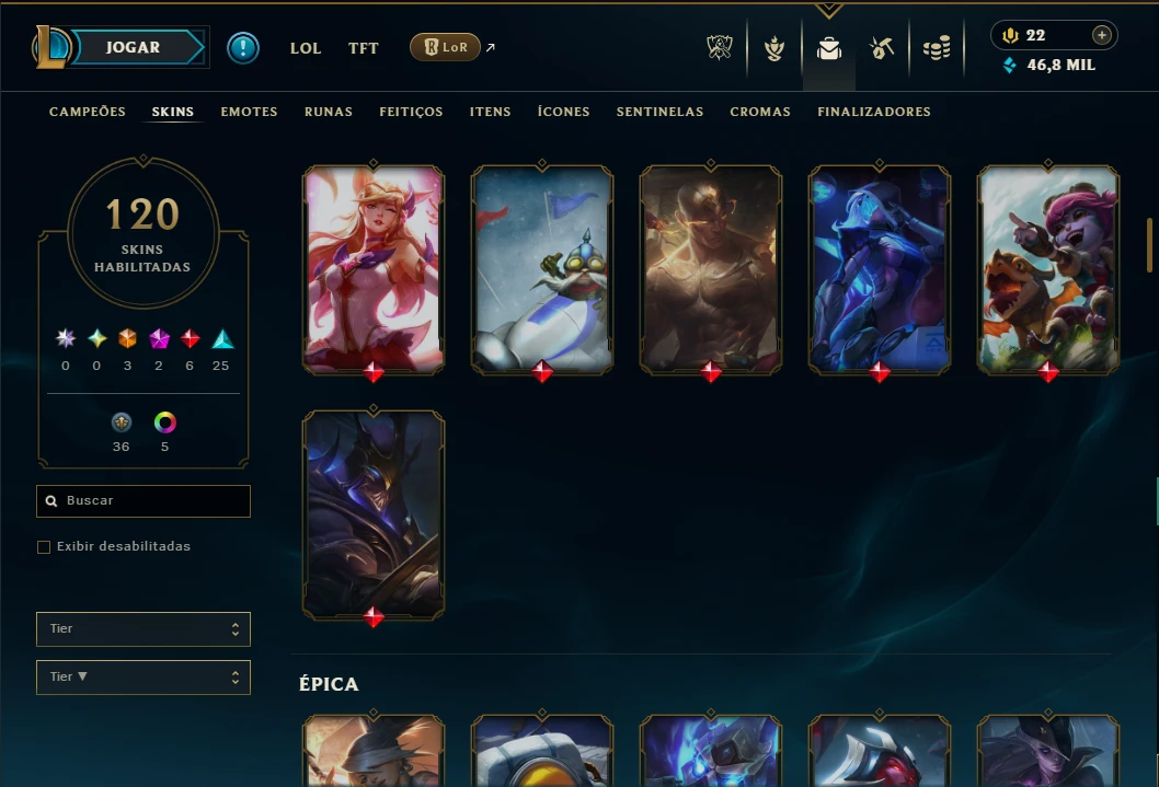 Mais de 5.000 vendas no site – Experiência e Confiança!Unranked com TODOS os Champs e 120 Skins ( ADC / MID / JG )