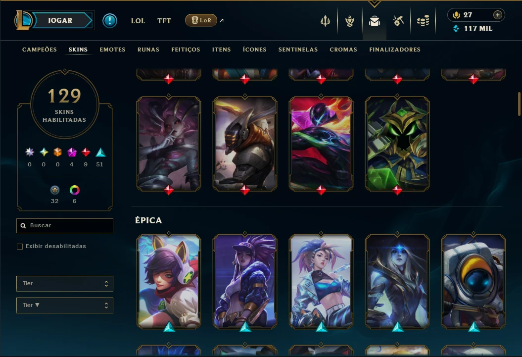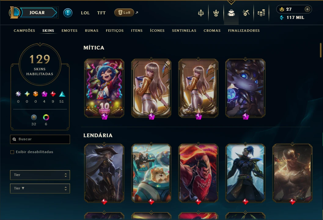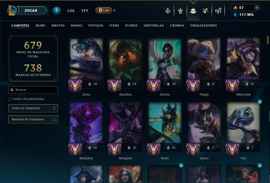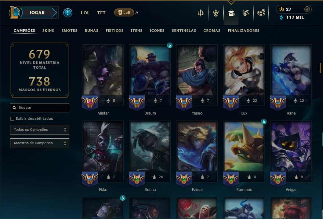 Unranked com TODOS os Champs e 129 Skins +2 Prestigios