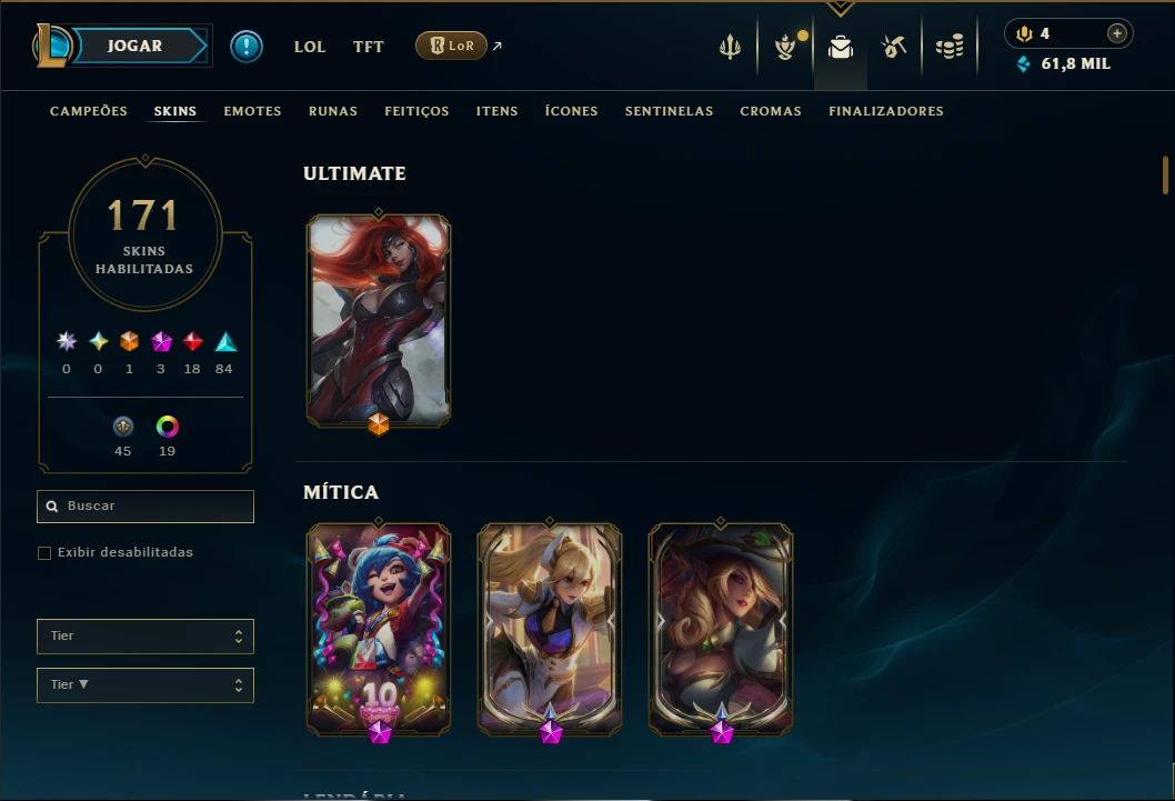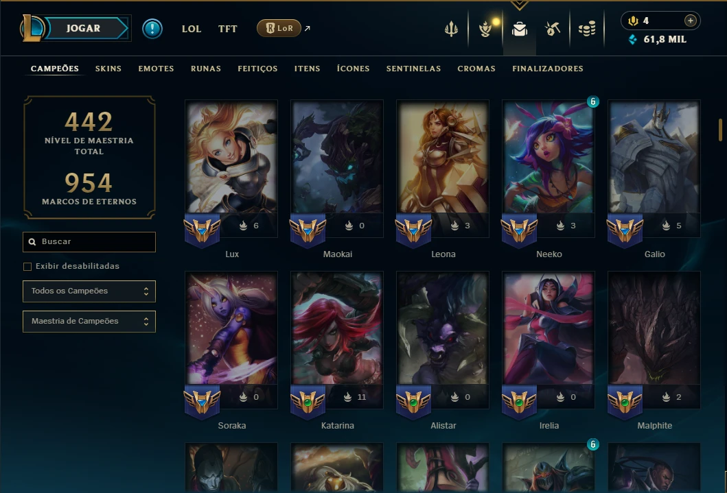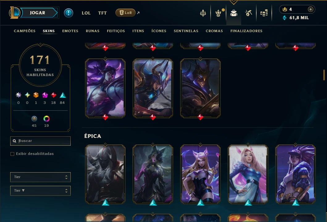 Mais de 5.000 vendas no site – Experiência e Confiança!Unranked com TODOS os Champs e 171 Skins +2 Prestigios