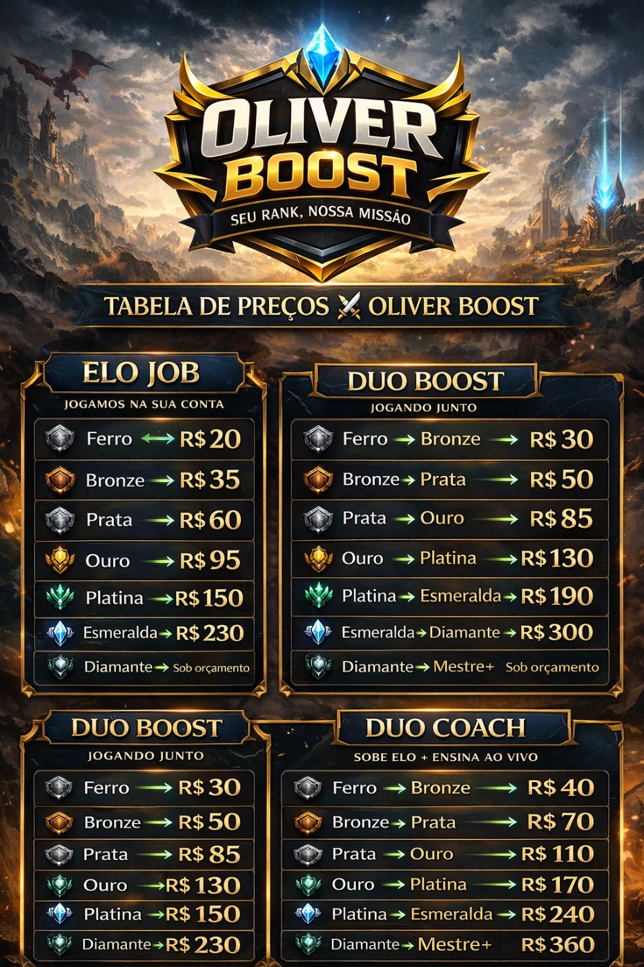Na Oliver Boost você sobe de elo rápido, seguro e com players experientes!
