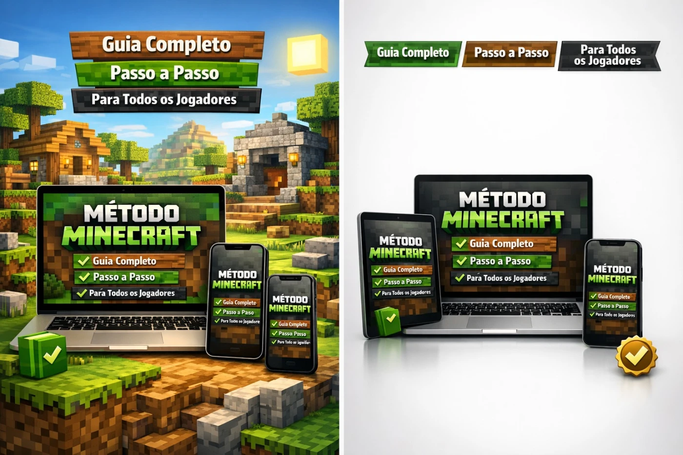 O Método Minecraft é um guia digital completo, feito para quem quer evoluir no jogo sem perder tempo.