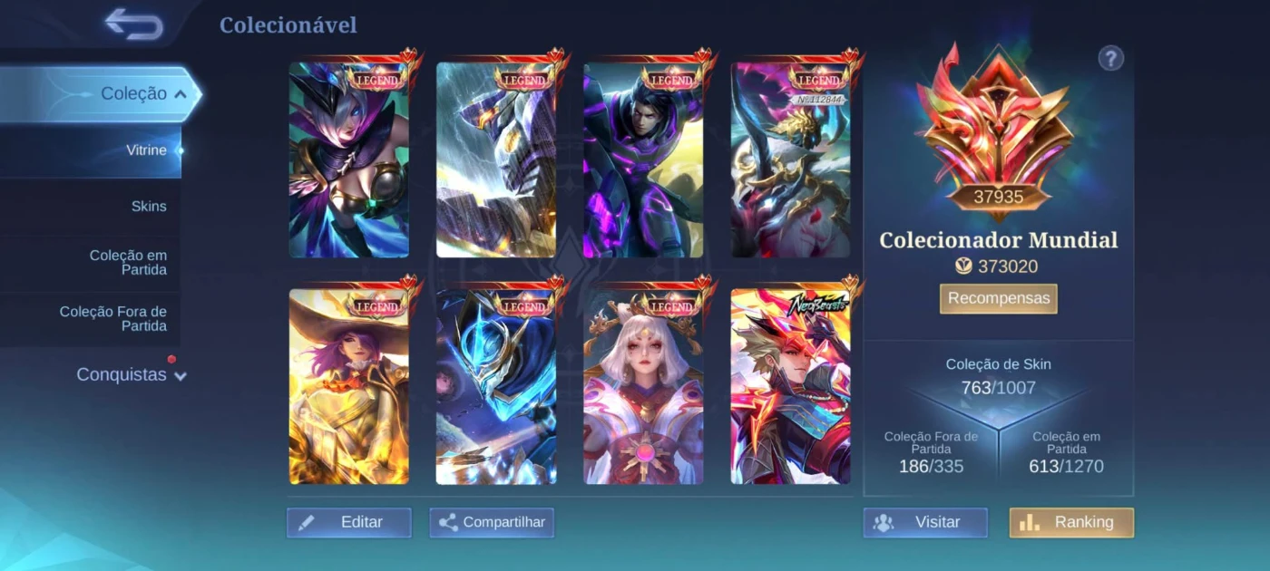 Continha de Mlb colecionador mundial todas legend - Mobile Legends