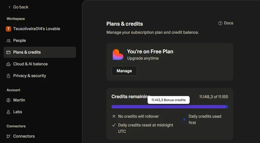 500 Créditos Lovable (+500 Bônus) - [por Tempo Limitado]