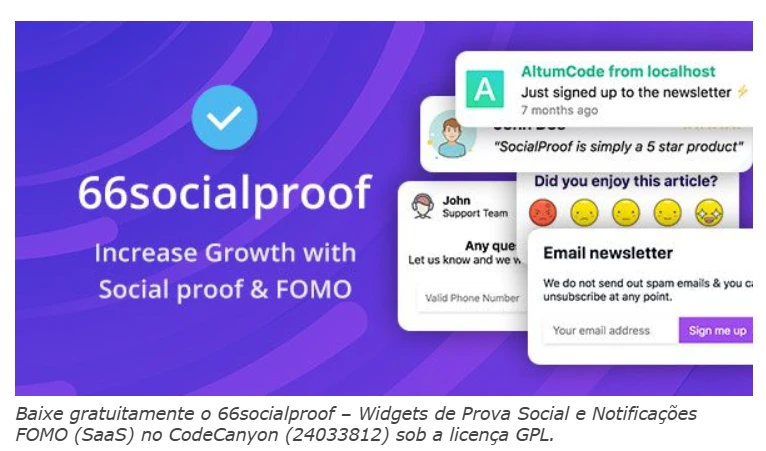 🔟 66socialproof – 29.0.0 (antigo SocialProofo) é um conjunto completo de ferramentas de marketing, plugins e pop-ups para criar FOMO (medo de ficar de fora), prova social, engajamento e fidelizar os visitantes do seu site.