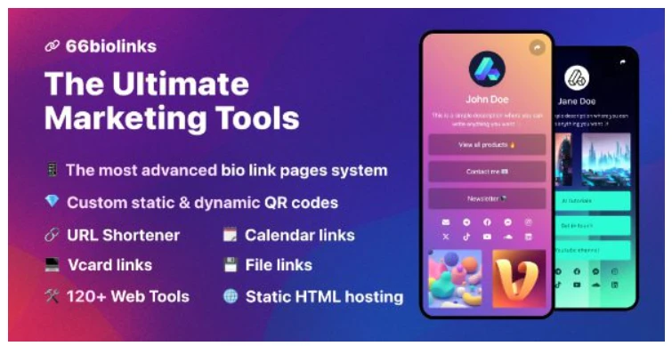 1️⃣ 66biolinks – (antigo phpBiolinks) é a única plataforma de links para redes sociais que você precisará, incluindo um encurtador de URLs completo, um sistema de códigos QR e um sistema de ferramentas web com 120 ferramentas úteis.