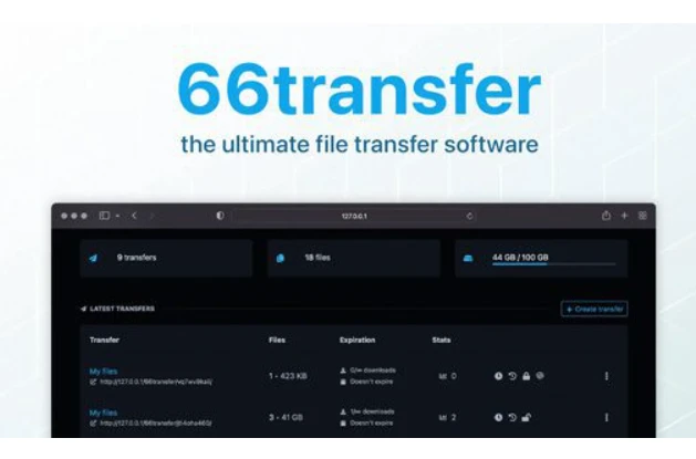 6️⃣ 66transfer – é um software de transferência de arquivos auto-hospedado, fácil de usar, leve e de alto desempenho, completo e desenvolvido com foco na privacidade.