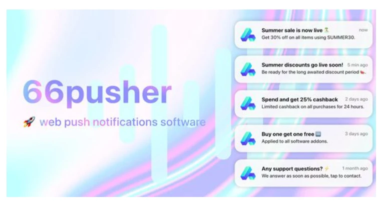 3️⃣ 66pusher –é um software completo para notificações push na web. Autohospedado , fácil de usar , leve e com alto desempenho, esta plataforma oferece todos os recursos necessários para o envio de notificações push para a web.