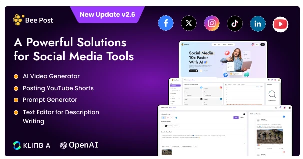 O BeePost é um sistema SaaS (Software como Serviço) voltado para gestão de redes sociais e criação de conteúdo com inteligência artificial. Ele permite que você crie, agende e publique posts em várias plataformas, além de oferecer um sistema de assinaturas para monetização.