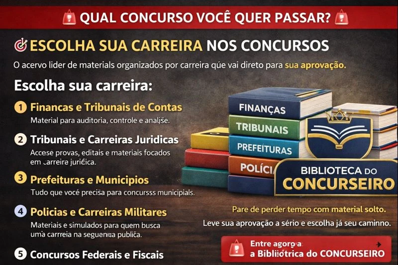 👉 Escolha sua carreira e tenha acesso à Biblioteca do Concurseiro agora mesmo