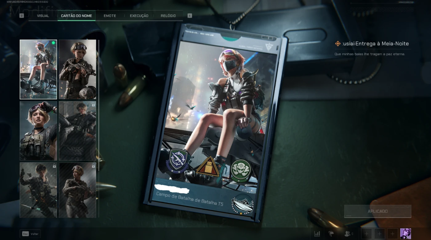 Destaque: O Titeless Code é a personificação da justiça impiedosa. Este visual de Operador traz o estilo tático e frio do Executor para o campo de batalha.