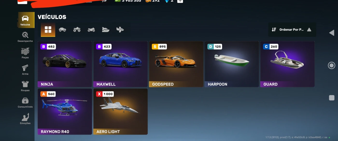 Conta level alto com verias coisas roupas carros pra ser divertir no jogo