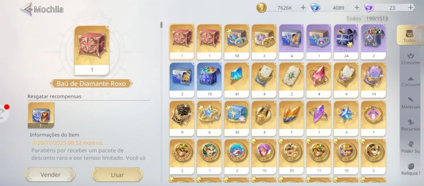 Quando a conta for comprada, poderá ter mais itens e outras coisas;