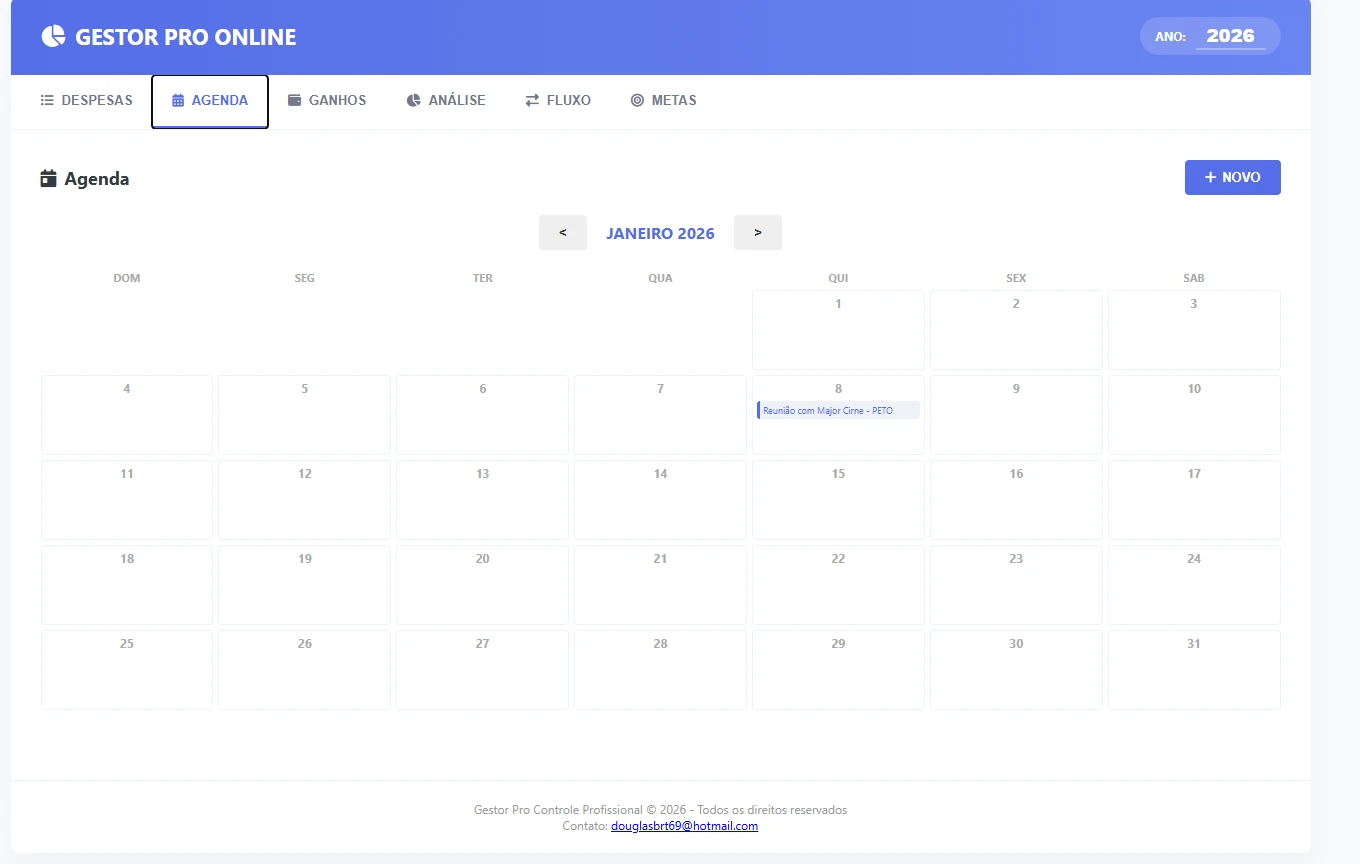 Multi-Anos: Navegue facilmente entre 2025, 2026 e além. Seu histórico fica salvo para sempre.