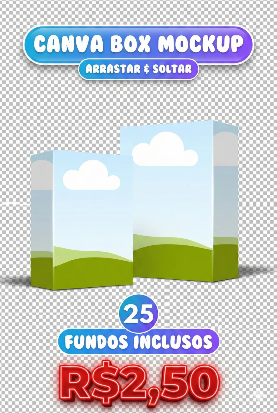 Este pack é uma coleção de mockups de caixa box 3D totalmente editáveis no Canva, criada para transformar ebooks, cursos, packs e ofertas low ticket em produtos com cara de premium.