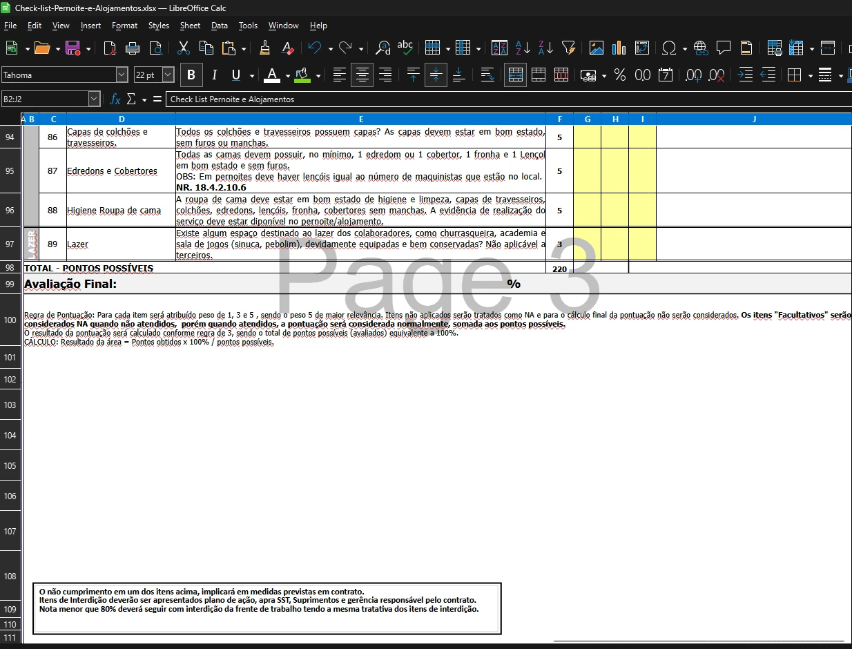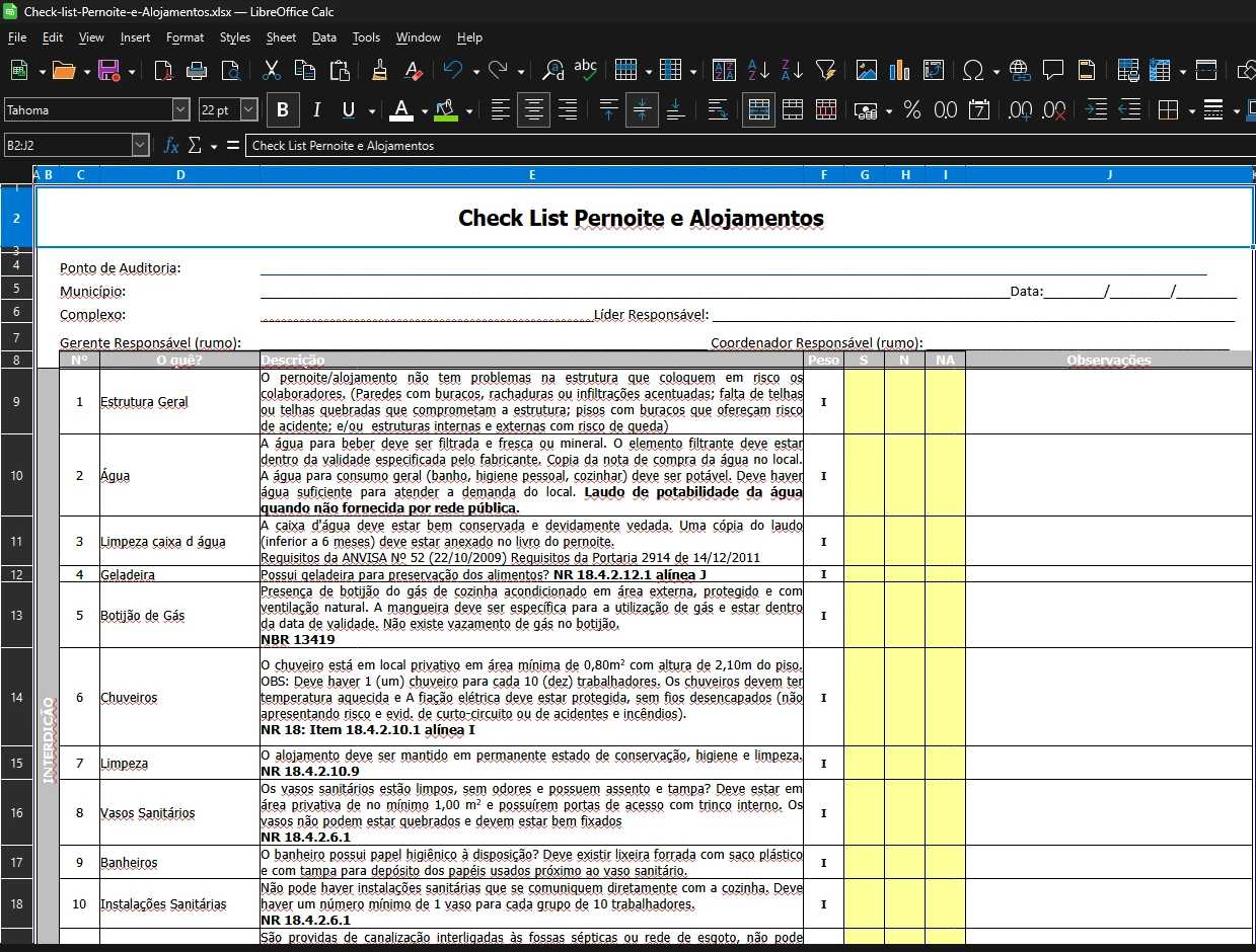 Planilha de Checklist para Alojamento – Controle de Itens - Outros