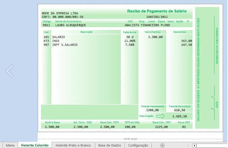Planilhas com impressão Verde ou Preto-e-branco + Sisteminha simples pra cadastro e impressão de Holerith. Pronto pra salvar o dia (veja as imagens).