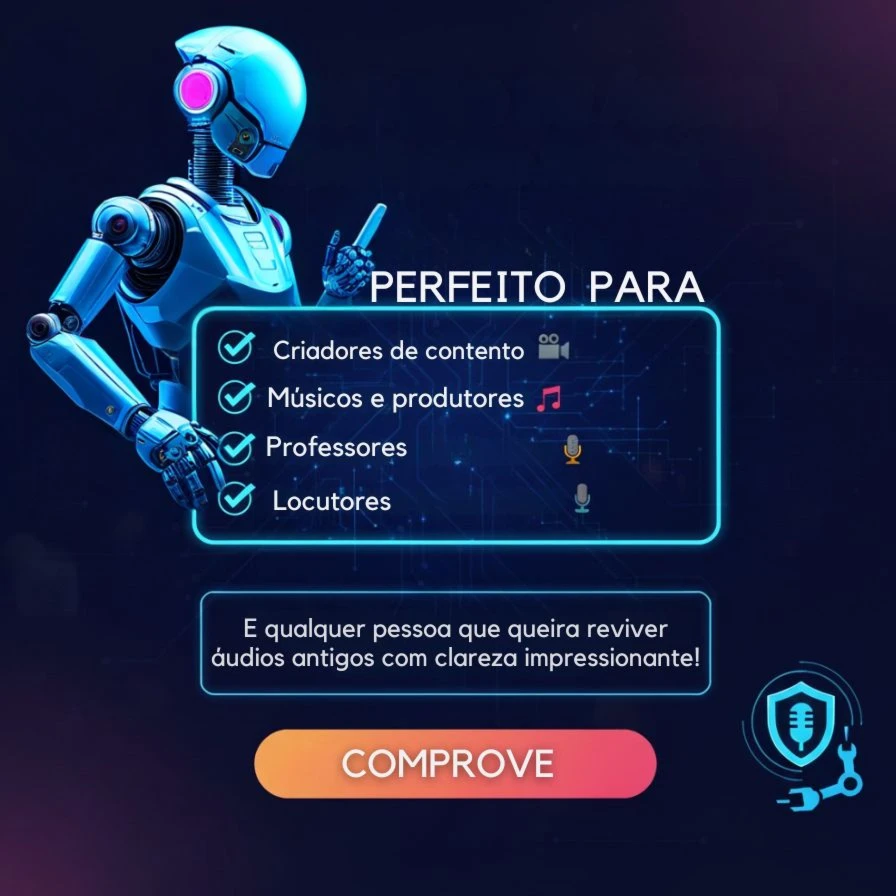 🚀 Em segundos, a IA remove chiados, ecos, distorções e melhora o timbre da voz — sem precisar de programas complicados.