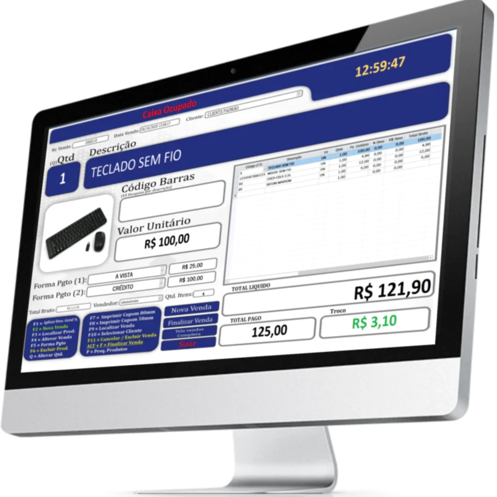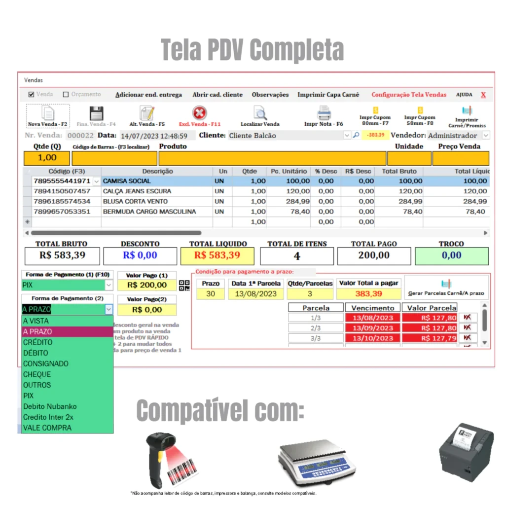 •Integração Total: Compatível com qualquer leitor de código de barras USB e permite a impressão de etiquetas em impressora comum A4, impressão de comprovantes de vendas em impressoras de 80mm ou 58mm.