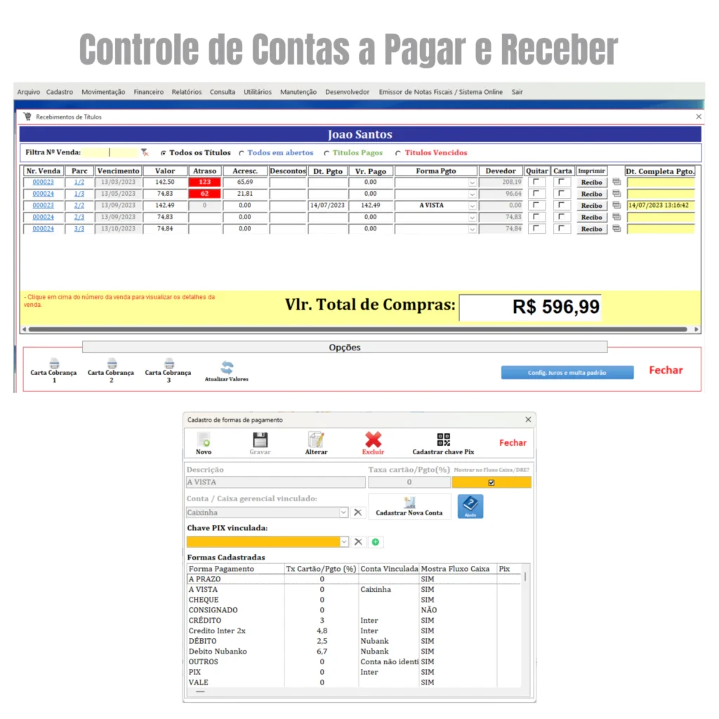 Vendas Simplificadas: Controle suas vendas por forma de pagamento, cadastrando métodos personalizados com taxas e outras informações. Inclui sistema de carnê com limite de compras por cliente, relatórios gerenciais e muito mais.