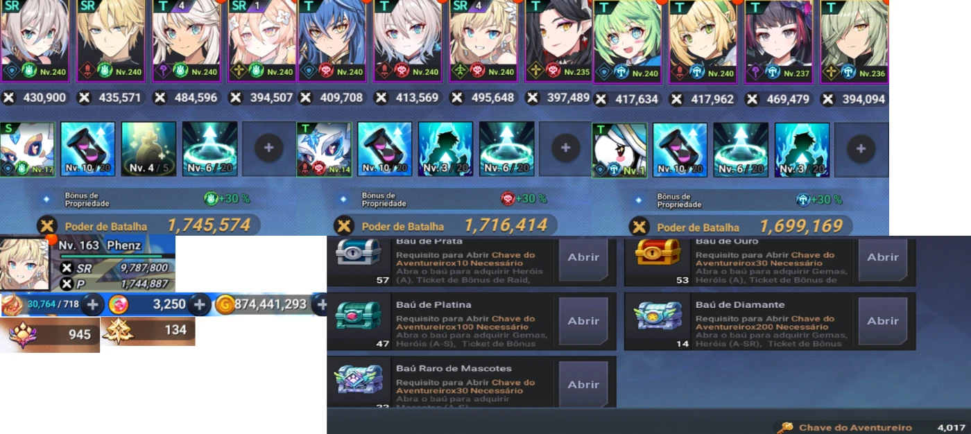 V>Conta Grand Chase Mobile Level 135 + IO Traje de Banho