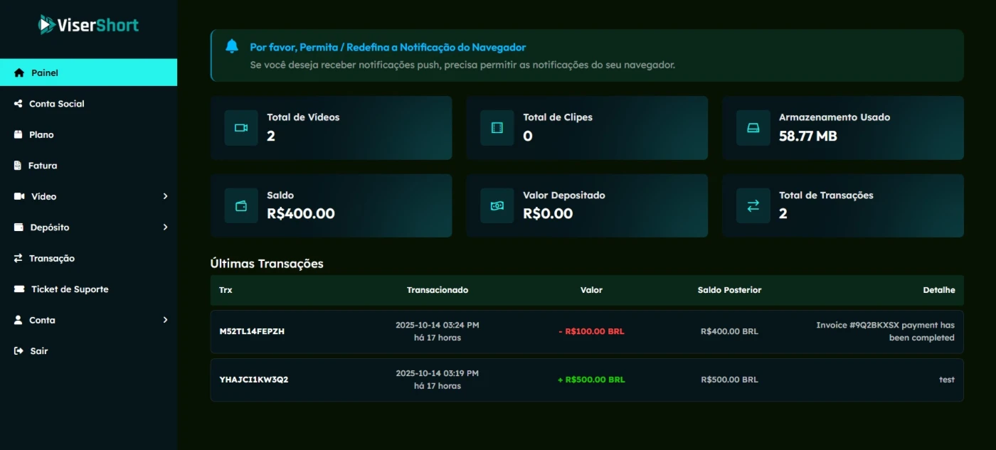 Não perca a chance de entrar em um dos mercados mais aquecidos da internet. Com o ViserShort, você não compra apenas um código, você adquire um negócio completo, pronto para gerar lucro. Adquira agora e comece a construir seu império de vídeos hoje mesmo!