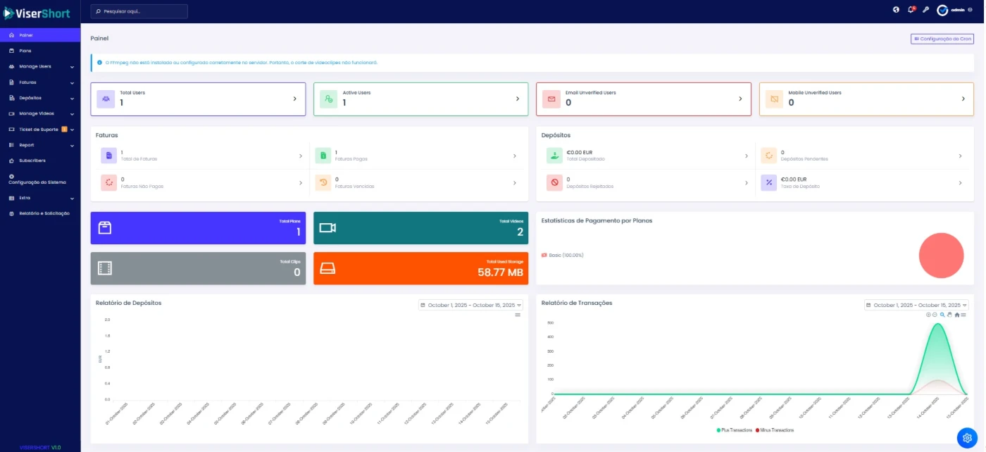 ⚙️ Painel de Administração Poderoso: Controle total sobre sua plataforma. Gerencie usuários, visualize relatórios de receita, configure planos, personalize o site e muito mais, tudo em um só lugar.