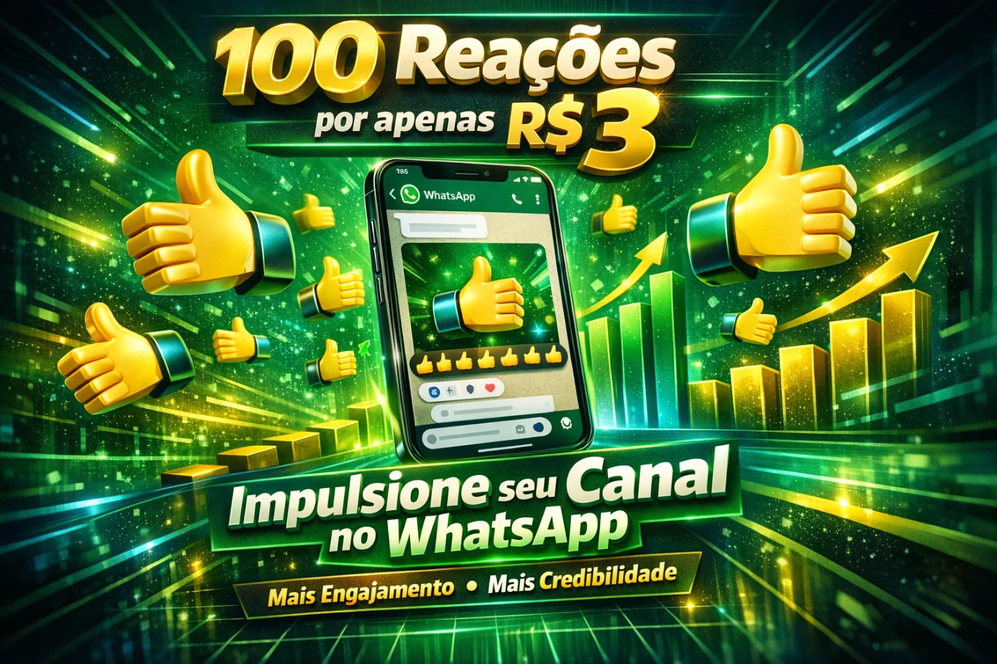 Você sabia que a credibilidade do seu canal depende de como o seu público interage com suas postagens? Com 100 Reações de Emoji por apenas R$3, você pode impulsionar o engajamento e aumentar a autoridade do seu canal de maneira rápida e simples!