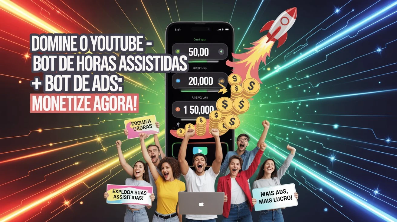 Quer monetizar seu canal no YouTube rapidinho, mas faltam horas assistidas e anúncios? Apresentamos o YouTube Bot de Horas Assistidas + Bot de Ads – a dupla imbatível que explode suas métricas e transforma views em dinheiro real!