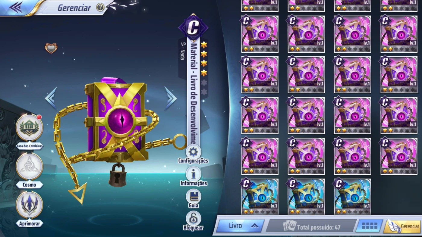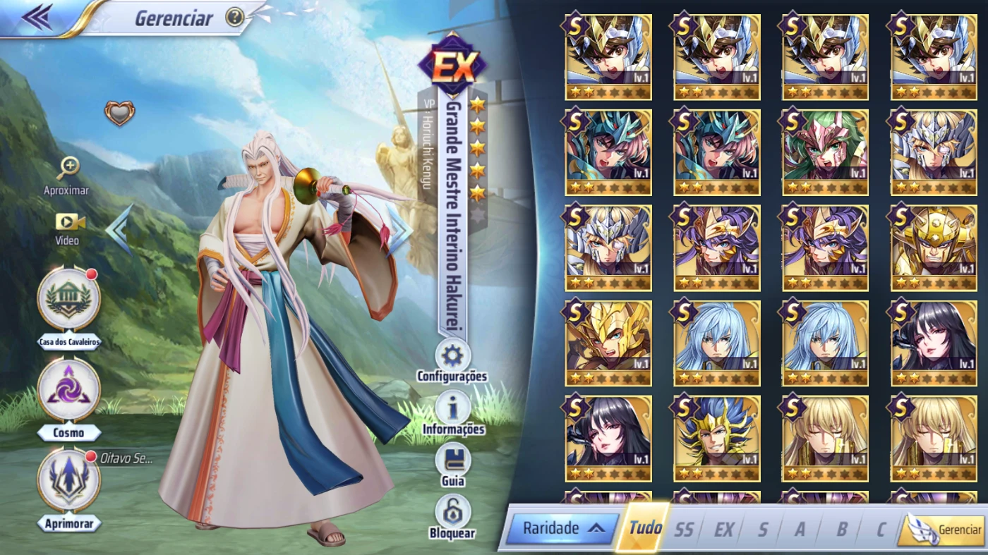 SERVIDOR A136 NVL 41 ( o farm é quase totalmente no automático ) SEM GEMAS (nenhum mangá feito) Altar e cofre especialista liberado PERSONAGENS: Grande Mestre interino hakurei /TENMA DE PEGASUS DIVINO/ Tanatos / artemis / kanon de gemeos/ hades / hypnos / suikyo /exclamação de atena/ camus de armadura de sapuris e outros A CONTA ESTÁ SEM VINCULO , Apenas login e senha pela Gtarcade (poderá adicionar um email secundário e telefone na conta e alterar senha normalmente) Full acesso ao comprador.