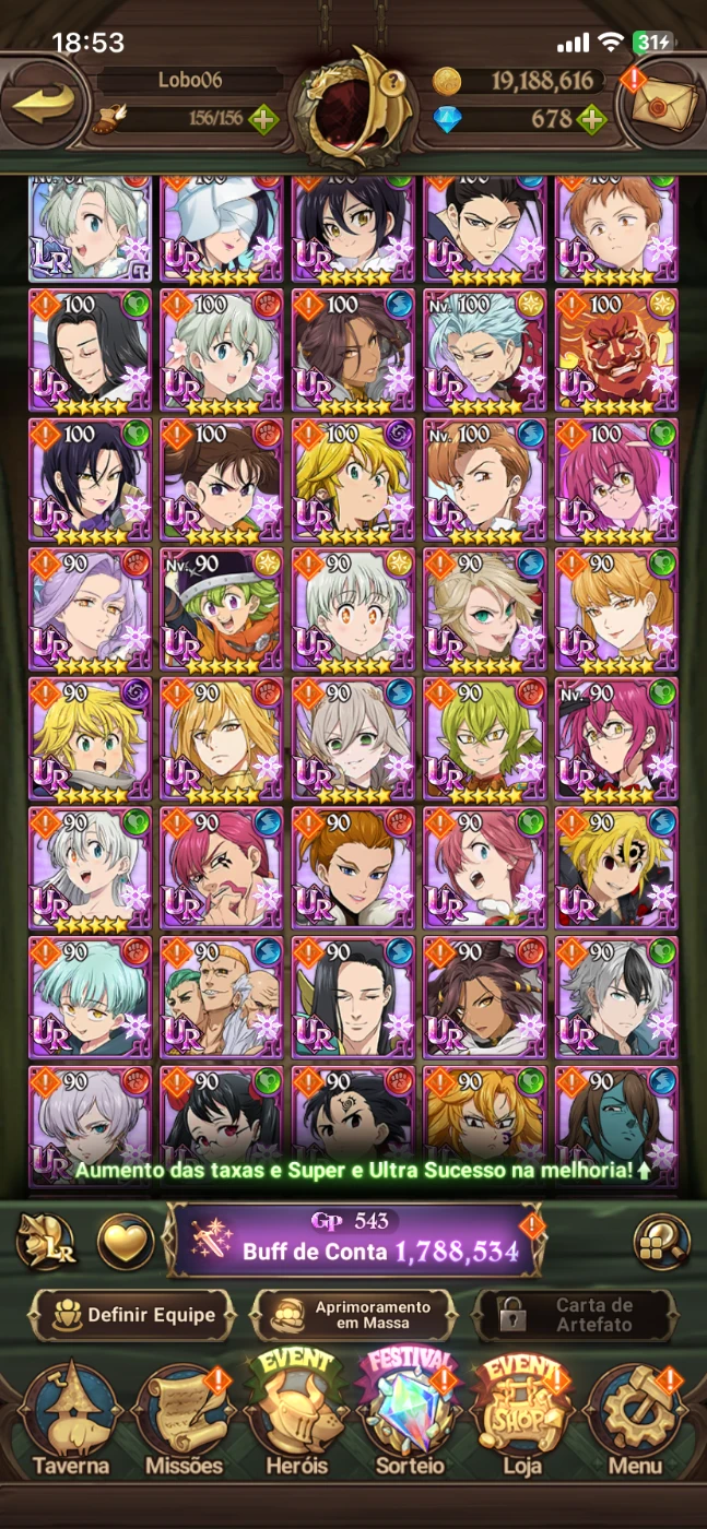 CONTA GLOBAL COM VÁRIOS RECURSOS E DIVERSOS HERÓIS PARA COMEÇAR MUITO BEM NO JOGO.