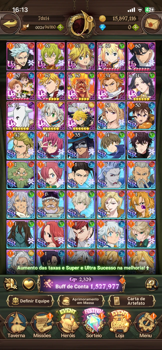 CONTA GLOBAL COM VÁRIOS RECURSOS E DIVERSOS HERÓIS PARA COMEÇAR MUITO BEM NO JOGO.