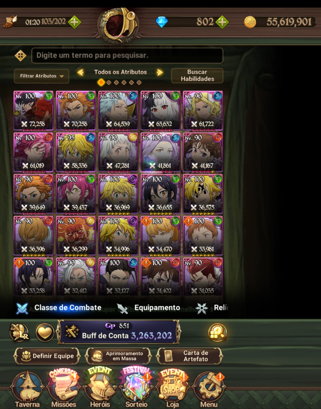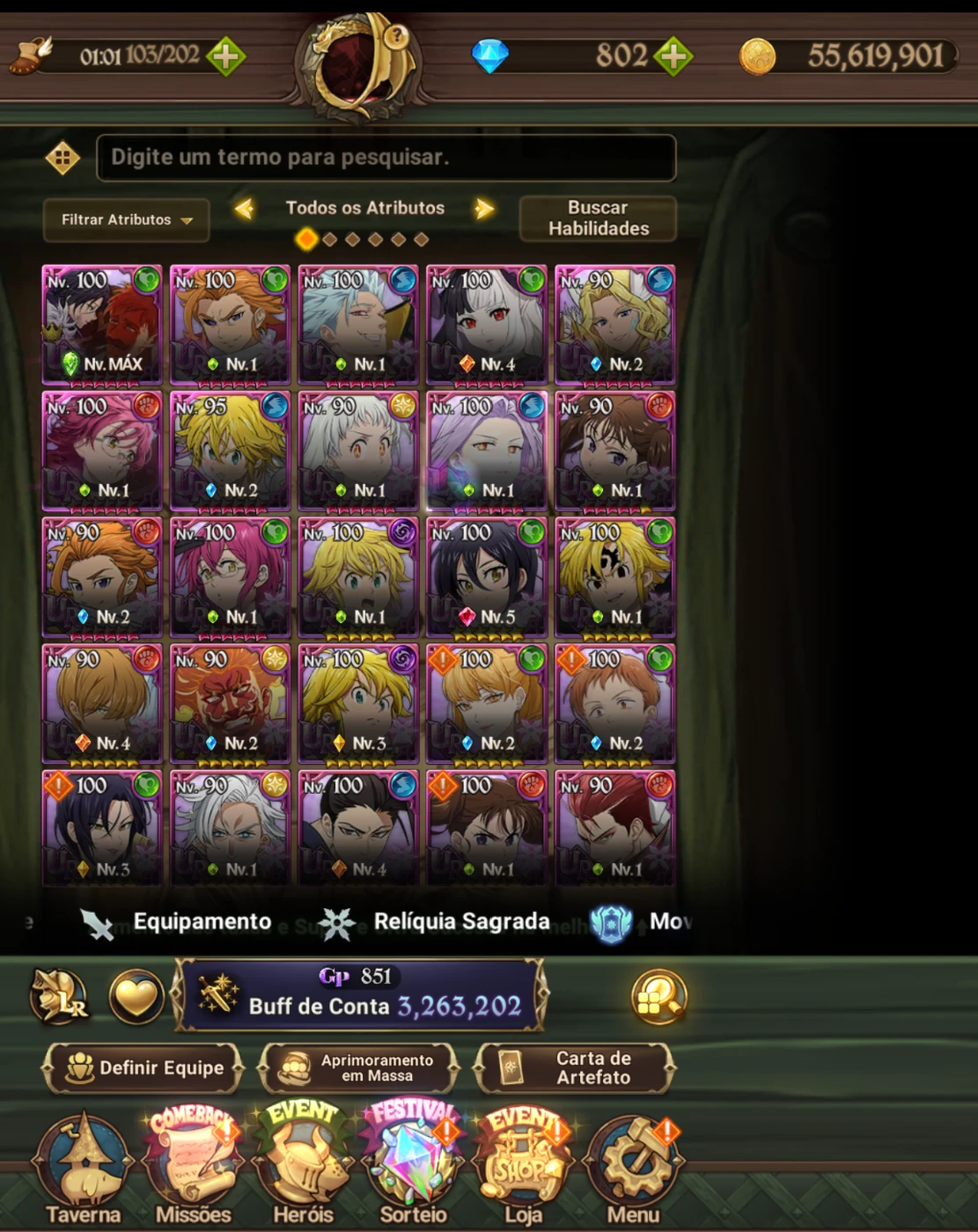 ⭐ Diversos personagens UR upados (nível 90~100)