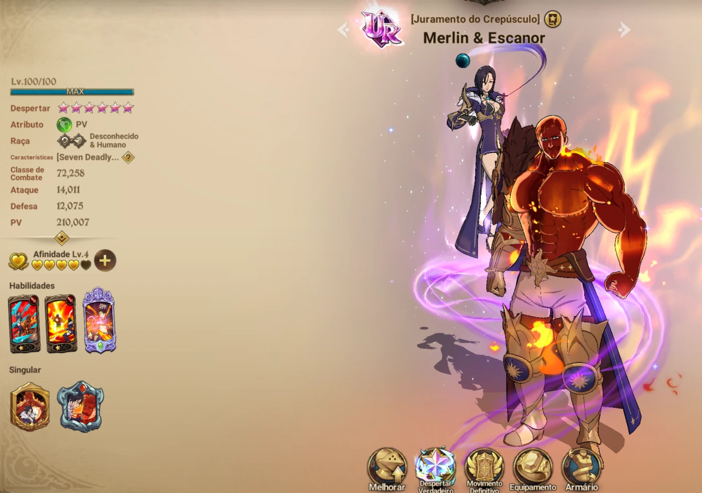 ✅ Conta – Escanor & Merlin 6/6 – Excelente Base!